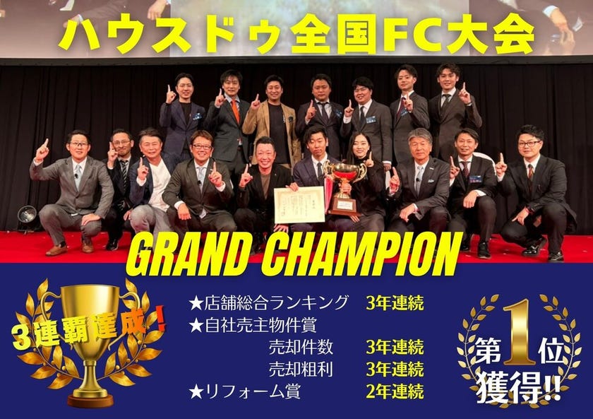 🏆【速報】全国FC大会2025!ハウスドゥ 東浦・阿久比、グランドチャンピオン3連覇で堂々の殿堂入り!🎊 いつも株式会社エネチタ ハウスドゥ店舗をご愛顧いただき、誠にありがとうございます。 この度、皆様に最高の吉報をお届けします! 先日、11月21日(金)に北海道 札幌市で開催されました「ハウスドゥ 全国FC大会」において、当社の2店舗が、全国の加盟店の中で歴史に残る快挙を達成いたしました。🥇 最高の栄誉!3連覇で「殿堂入り」を達成! ハウスドゥ 東浦・阿久比は、3連覇をかけて臨んだ大会で、見事目標を達成し、最高の栄誉である殿堂入りを果たしました! 🏆店舗総合ランキング全国1位3連覇達成 🏆リフォーム賞全国1位2連覇達成 【快挙】グランドチャンピオン3連覇🏆殿堂入り🏆 この栄誉は、ひとえに日頃から私たちを信頼してくださるお客様のおかげです。心より感謝申し上げます。 👑 W受賞!不動産買取専門店も全国トップを堅持! さらに、ハウスドゥ 家・不動産買取専門店 東海も、不動産買取の分野で全国のトップを堅持しました! 🏆自社売主物件 売却件数全国1位3連覇達成 🏆自社売主物件 売却粗利全国1位3連覇達成 この2冠3連覇の達成により、当社の買取サービスが、「高値」と「スピード」の両面において、全国トップクラスの実績を誇っていることが証明されました。 🌟 これからもお客様の最高のパートナーとして 「殿堂入り」という最高の節目を迎えましたが、私たちはこれに慢心することなく、より一層、地域の皆様の不動産に関するお悩みに寄り添ってまいります。 不動産の売却、購入、リフォームなど、どんなご相談でも、全国トップの実績と信頼を持つハウスドゥ 東浦・阿久比、およびハウスドゥ 家・不動産買取専門店 東海にお任せください! 今後とも変わらぬご愛顧を賜りますよう、よろしくお願い申し上げます。